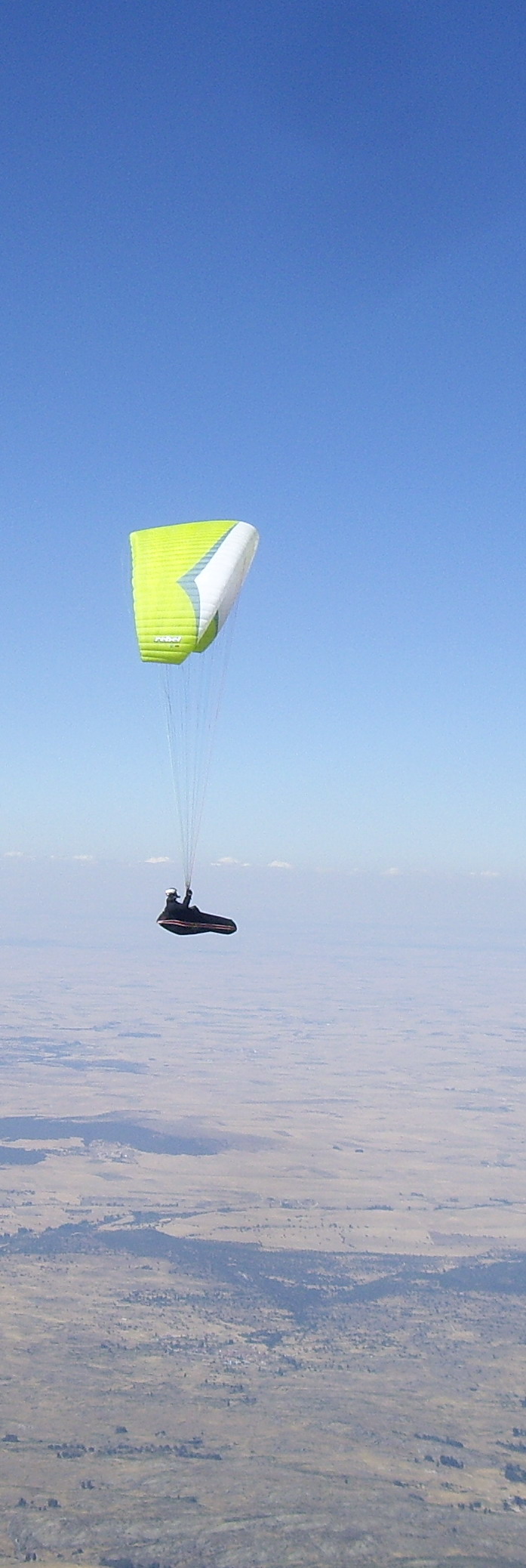 A very pleasant day, with an uneventful morning flight then good XC conditions in the afternoon. Light W in the valley and a slightly difficult climb at the pass. Colin and Dave, first to arrive, landed near the Cemetery. Later, Bill and myself found a good climb and went via the Antenna route, followed by Mike and Peter. Pete, Bill and myself found a very low climb near Amavida, but leaving Mike on the ground there. Bill and I finally got to 3500m+, which was enough for me to make the 30km glide all the way to Avila along with Bill, but with Pete missing the big climb and landing at the bend in the road.