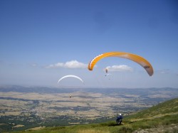 Many pilots were hoping for a rest after late retrieves yesterday. They got what they wanted. The wind started to come on early but was soon over the back with a nice mix of dust devils. Not looking too good for the next few days. The photo is of two of yesterdays winners, Christian Maurer, with the top score, and Dave Regan with his personal best.
