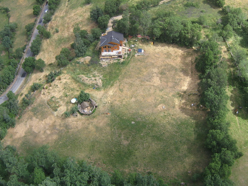 The photo below is of our new house taken on that flight. The second flight was similar but with increasing Cirrus comming in and the Cus developing more depth. An easy flight to the Quarry, and just as I was radioing to Pete that we were landing near the Cemetery, Brian pulled out a low save taking him quickly towards the Pass. Unfortunatel the wind had now picked up and having lost the thermal he had to land in turbulent conditions in a less than perfect spot. I followed above then landed in a slightly better spot nearby but with plenty of wind as well.
