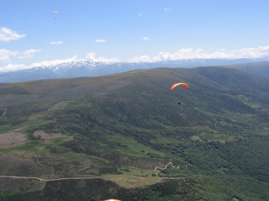 It seemed the best place to fly in Europe today was the UK or Russia. As we have Russians and Brits here this week it was a great shame that perhaps the worse place to fly was here with the sudden groth of a low and rain and storms. Oh well, a bit of footy might have cheered us up. However, even that turned out to be rubbish with a zero zero draw. To add to the depression my new pet geese and ducks have disapeared, probably to a predator. Anyway, tommorrow and for a long time after it looks good. A photo of Nigel over the Corrals on route to Avila yesterday.