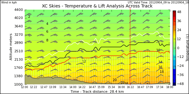 Lighter winds and improved thermal climbs to the inversion at around 2500- 2600m. A slow start although max temps 1ºC higher than yesterday at 24ºC. The NE wind does seem noticably less so we may have a better and longer day.