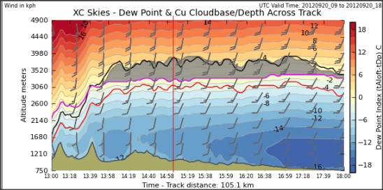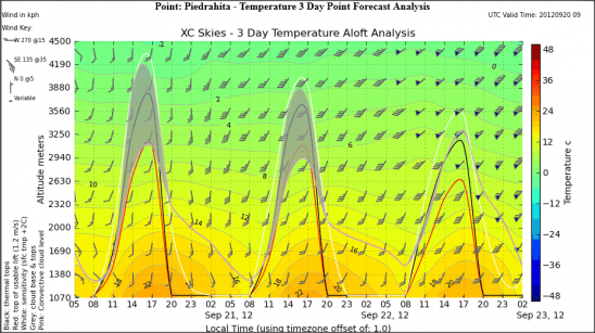 Reasonalbe XC potential if we are flying into the plains away from mountain Cu development. We will probably go to Lastra (S site) for an earlier launch with stronger climbs and a better route to the flatlands.