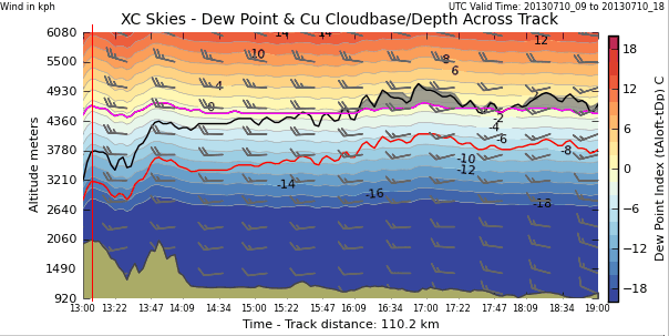 A better situation this morning with less wind and  less chance of big cloud build ups.  Generally W to SW so a big Open distance could be possible.  Once again the trigger temp is very high so the day will probably not get going until around 2pm.  Blue convergence expected in the Ambles Valley.
