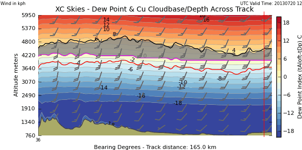 Not disimilar to yesterday so we will have the same issues with the take off. Once again very high potential for a long XC, but those relatively high winds will make it a bit problematic at launch later on.