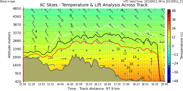 More stability than yesterday and generally blue thermals in the flats. Probably quite weak, with inversions around 2300 to 2600m. It will probably be a bit of a struggle early on. Early winds from the NE, but as conditions allow us to get higher we will find more NW in altitude. Not disimilar to Monday and Tuesday, but with perhaps lighter thermals especially early in the day.