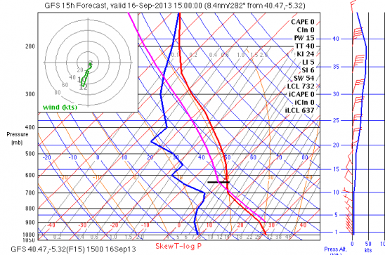 High pressure moving in will stabilise thins for the next few days removing the risk of Cbs which we have had since Thursday. Light winds from the NE, but with more NW above the boundry layer.