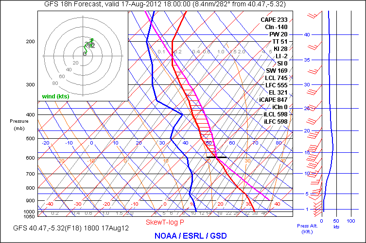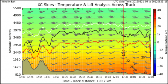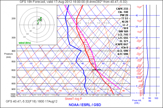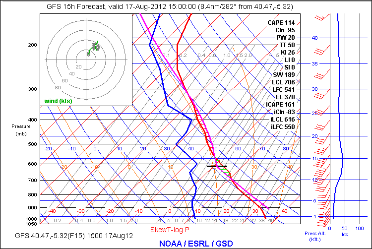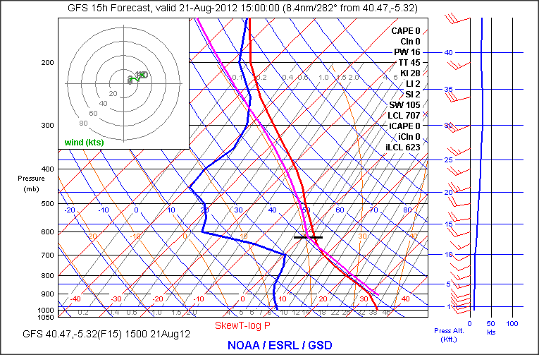 The wind at PN is crossed along the hill at 8.30am, so probably it will come on. Winds in West and going more North at the end of the day. A strong inverstion near take off altitude rising only to around 2600m durng the day. Some climbs to maybe 2800 later in the day, but stronger winds aloft will make it turbulent. Expect once again strong winds in the Ambles Valley and compression at the Pass and strong downslope winds in the Vicinity of Villaotoro.