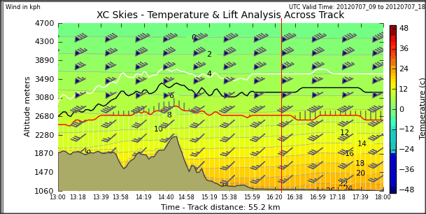 The Cross section below shows time and conditions along a cross section of the route from Peña Negra to Segovia.