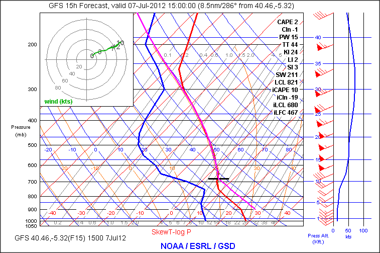 The skew T below assumes 28ºC max temp. The inversion at 2600m should rise to 3200m by late afternoon.
